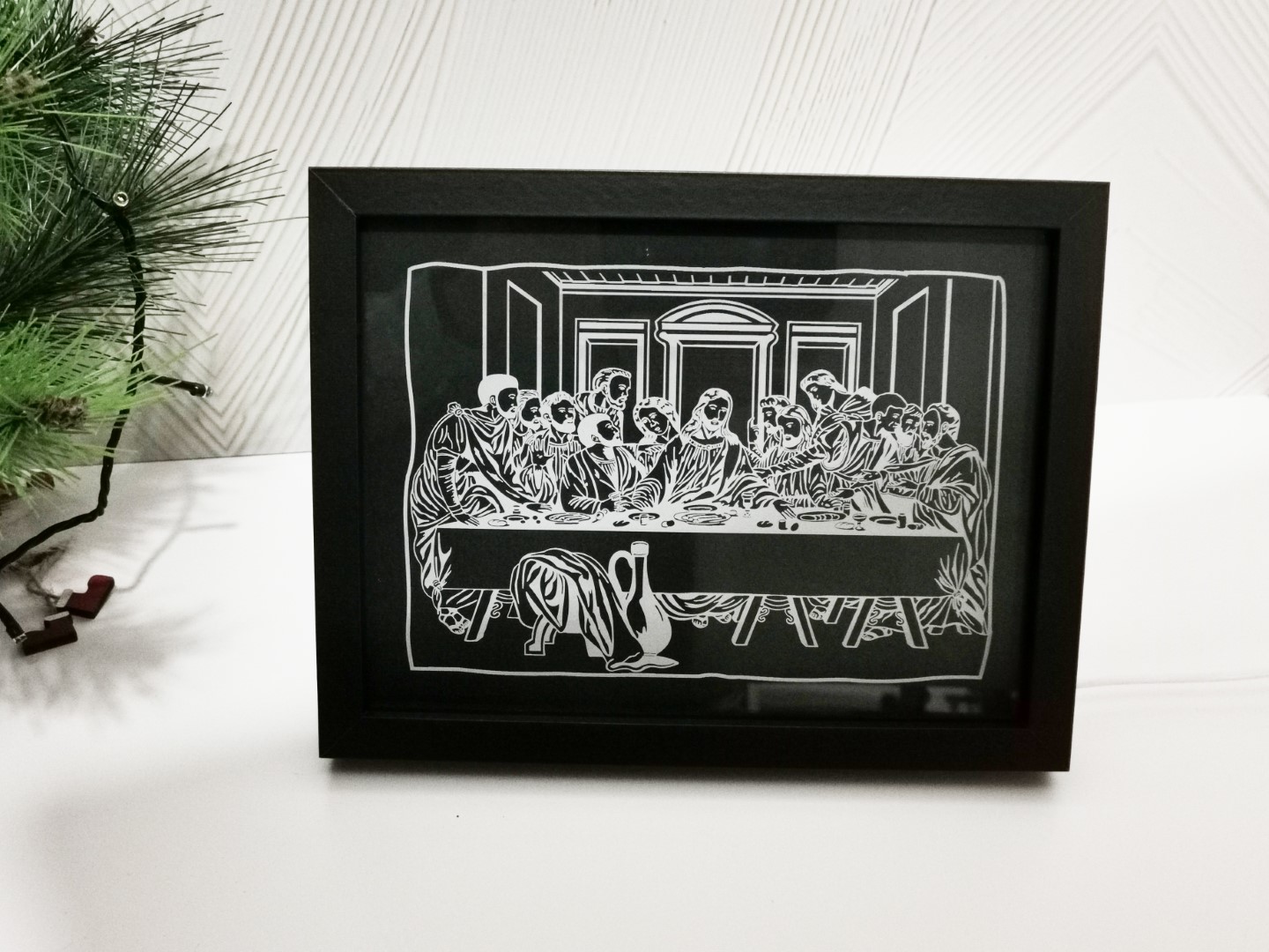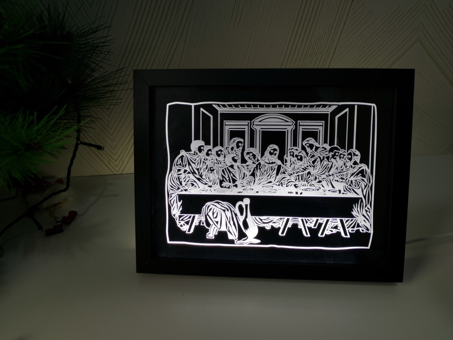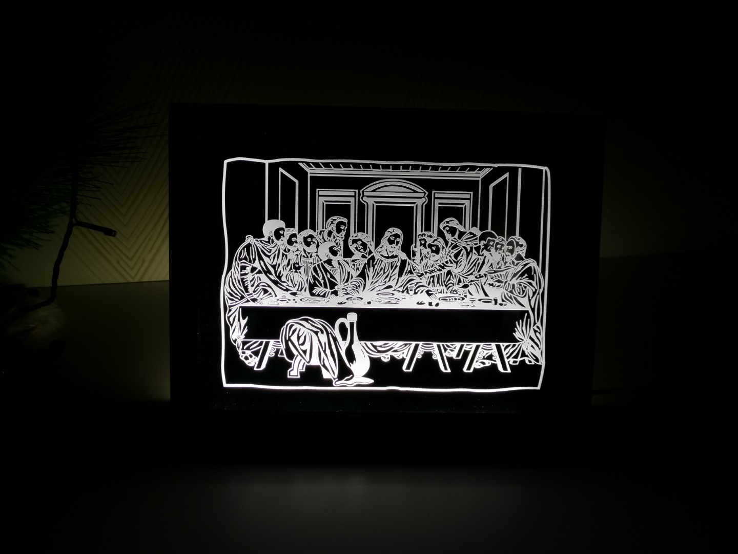 Moldura Santa Ceia com pé de apoio em acrilico gravado iluminada.